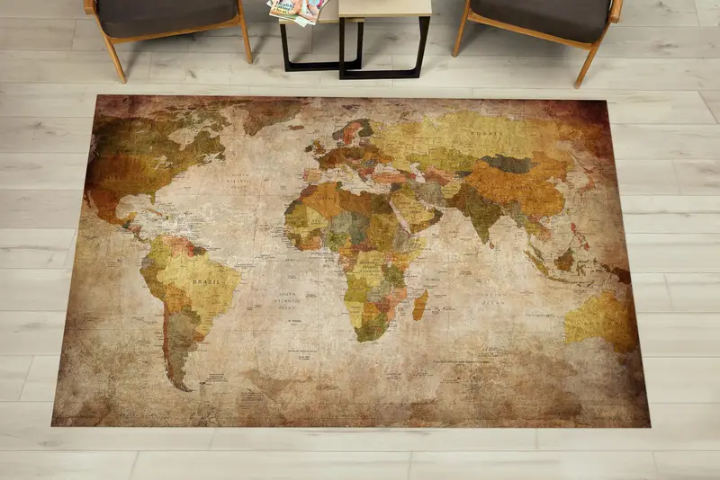 Global Explorer Printed Rug: World Map Atlas Design for Modern Homes