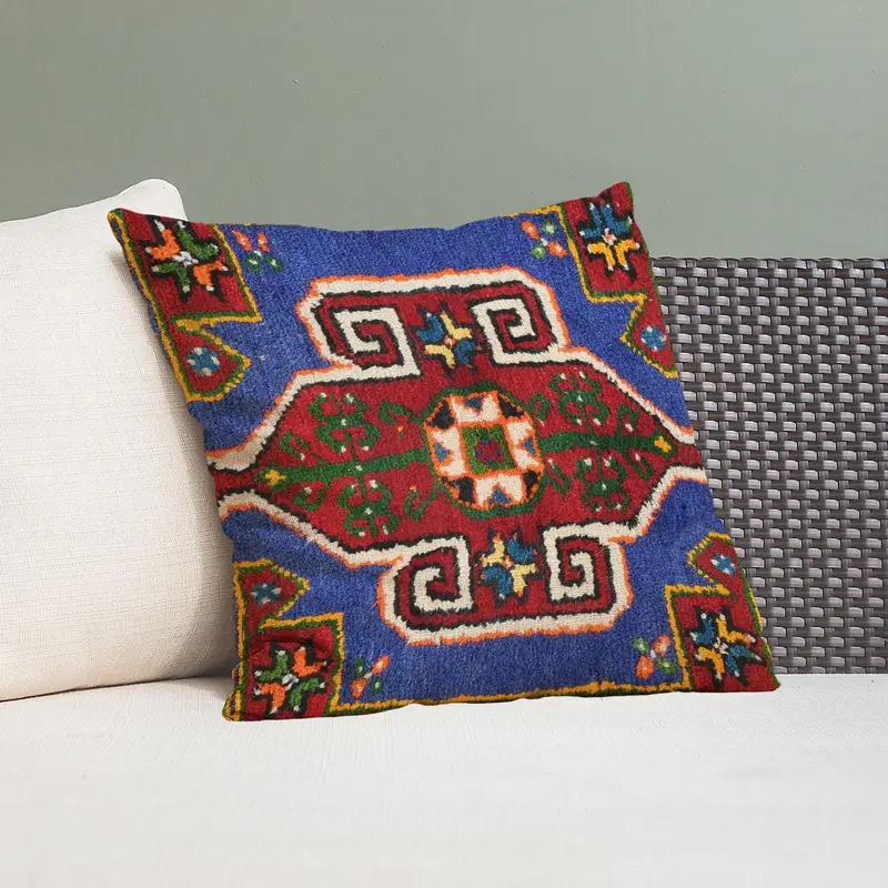 Shaped Kilim Motif Pillow Cover, Printed Pillow with Modern Design