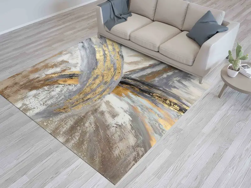 Golden Marble Printed Rug, Luxury Abstract Design for Modern Homes