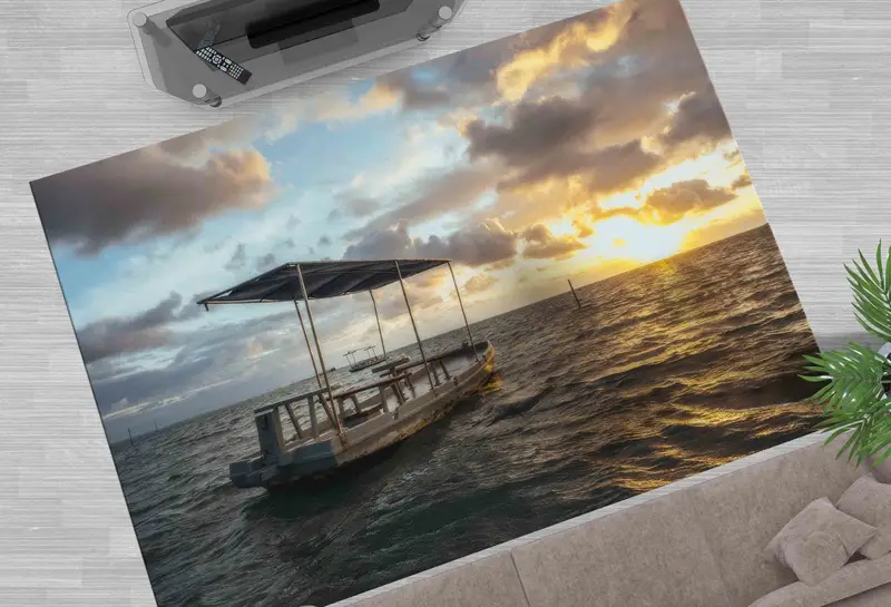 Seascape Sunset Sky Printed Rug - Coastal Ocean Landscape Design