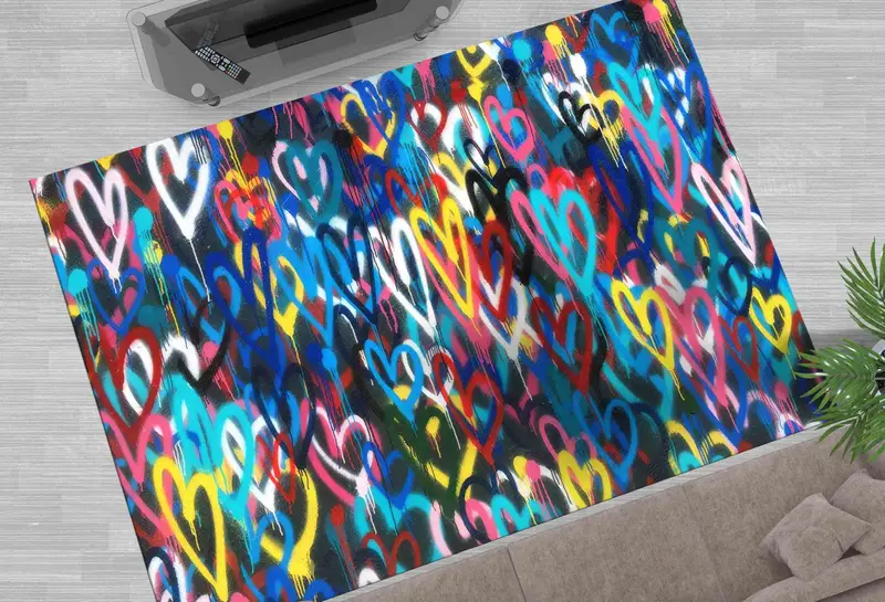 Colorful Hearts Banksy Printed Rug - Love & Multicolor Design