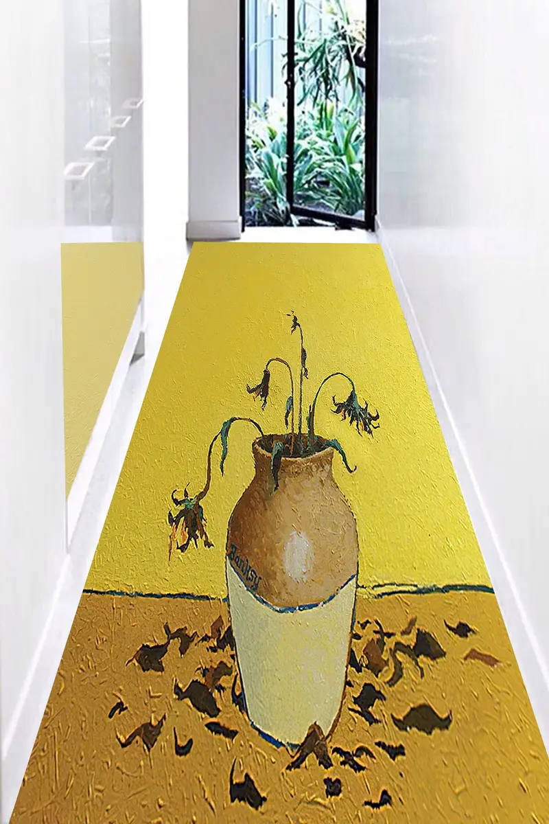 Sunflower Banksy Printed Rug: Vibrant Abstract Art for Modern Spaces