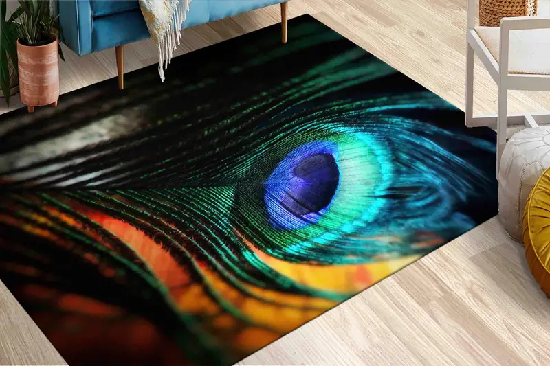 Vibrant Peacock Feather Printed Rug, Modern Design Home Decor