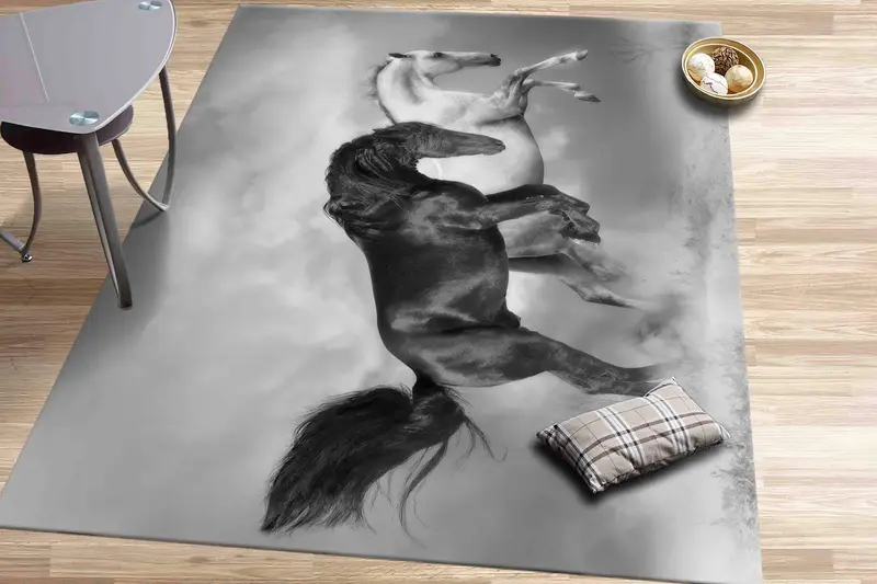Horse Lover's Delight: Modern Printed Rug for Loft & Home