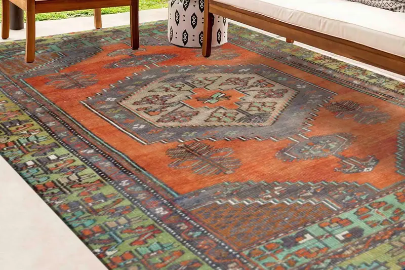 Geometric Pattern Brown Green Orange Vintage Printed Rug