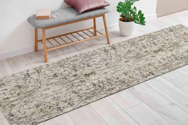 Floral Runner Printed Rug - Vintage Beige & Brown Kitchen Hallway