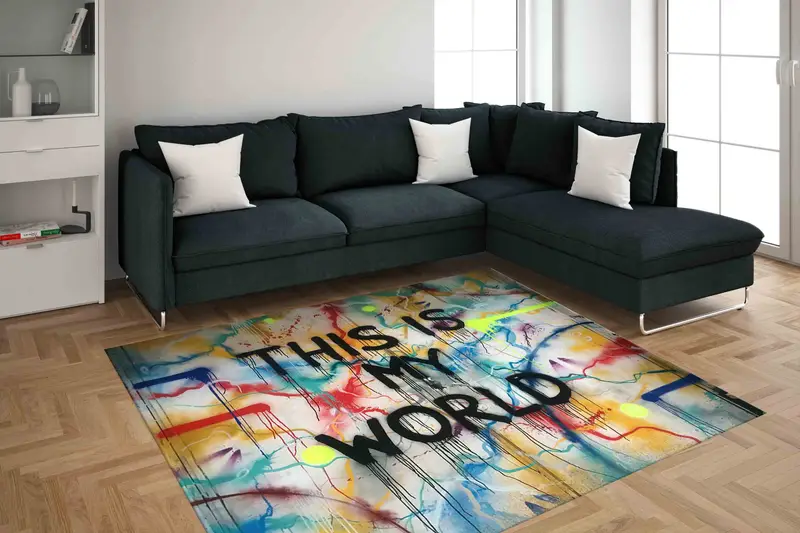 Vibrant Graffiti Printed Rug: Modern Art for Your Space