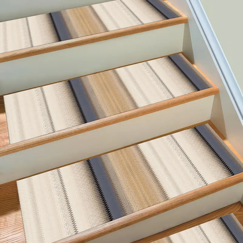 Beige Boho Kilim Step Rug, Trendy Printed Rug for Modern Homes