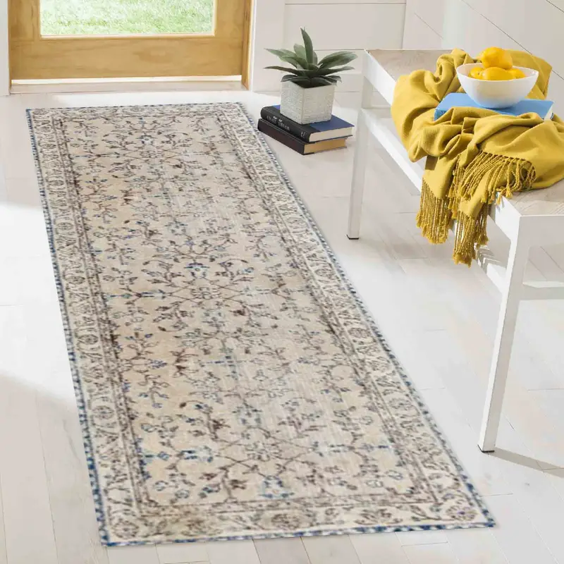 Floral Pattern Beige Vintage Printed Rug with Soft Brown Tones