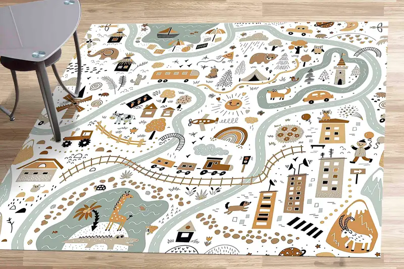 Car Road Pattern Printed Rug for Kids Play Room Decoration