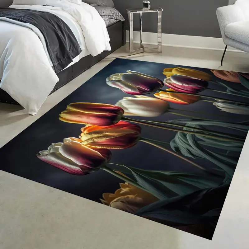 Vibrant Tulip Printed Rug - Modern Floral Accent for Living Room