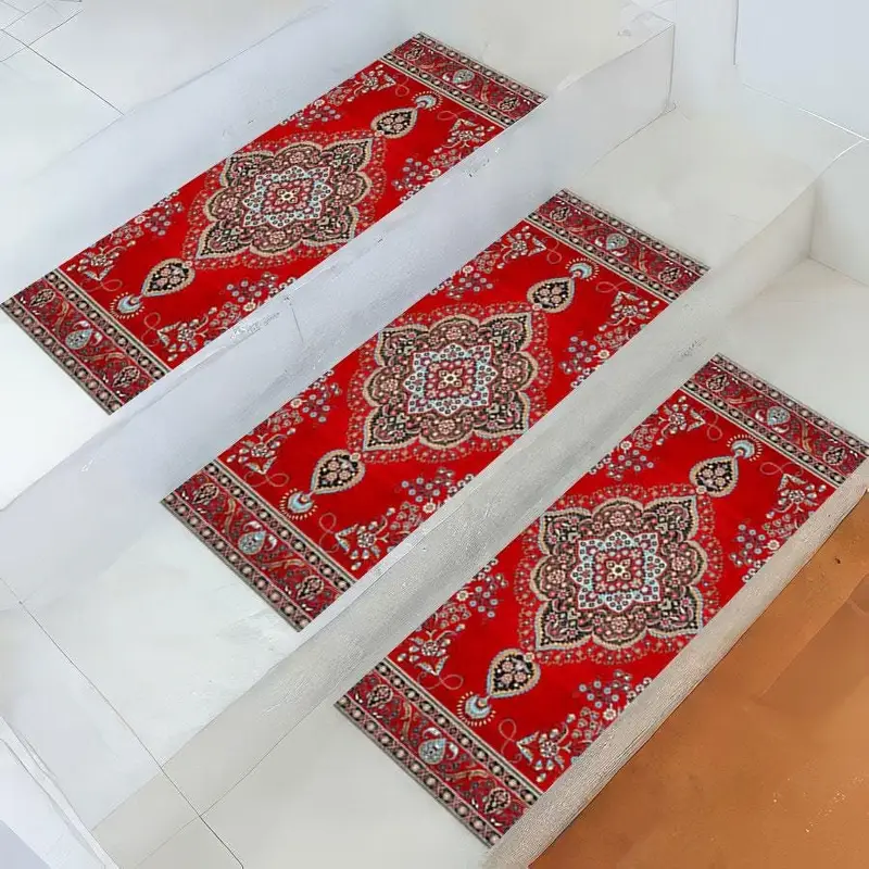 Red & Blue Turkish Vintage Floral Step Printed Rug