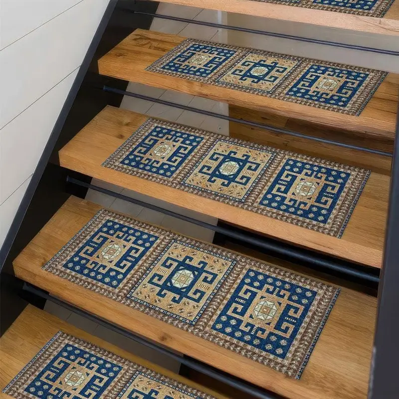 Vintage Blue & Brown Geometric Printed Step Rug