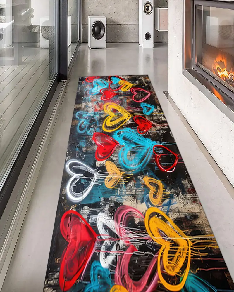 Hearts Graffiti Printed Rug: Colorful Modern Art for Home