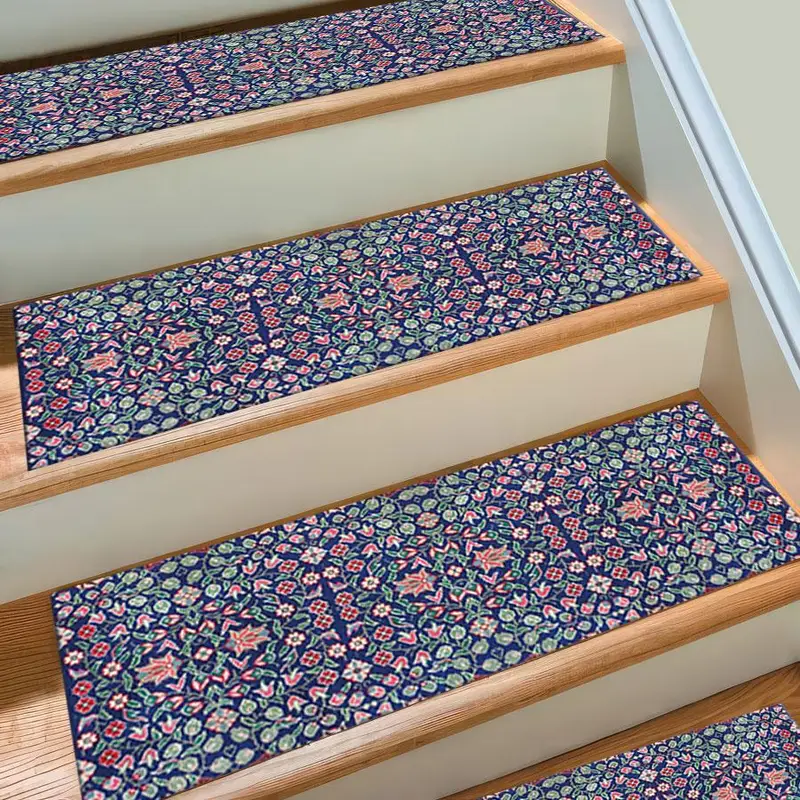 Vintage Floral Blue and Green Printed Rug for Modern Homes