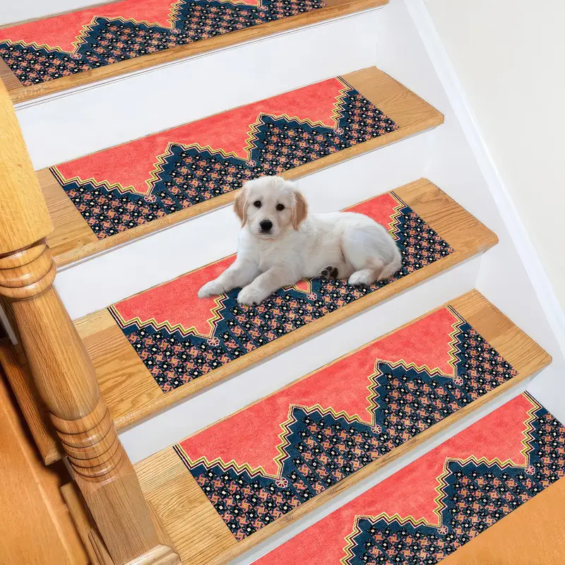 Geometric Step Rug, Turkish Design Printed Rug for Modern Decor