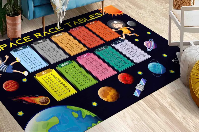 Colorful Astronaut Printed Rug for Kids Room & Play Area