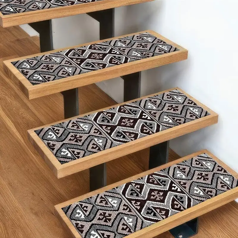 Geometric Vintage Design Brown Beige Grey Printed Step Rug