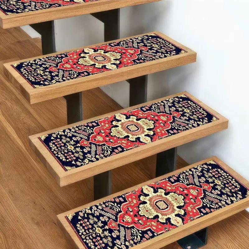 Vintage-Inspired Printed Rug: Black, Red, Beige Step Rug