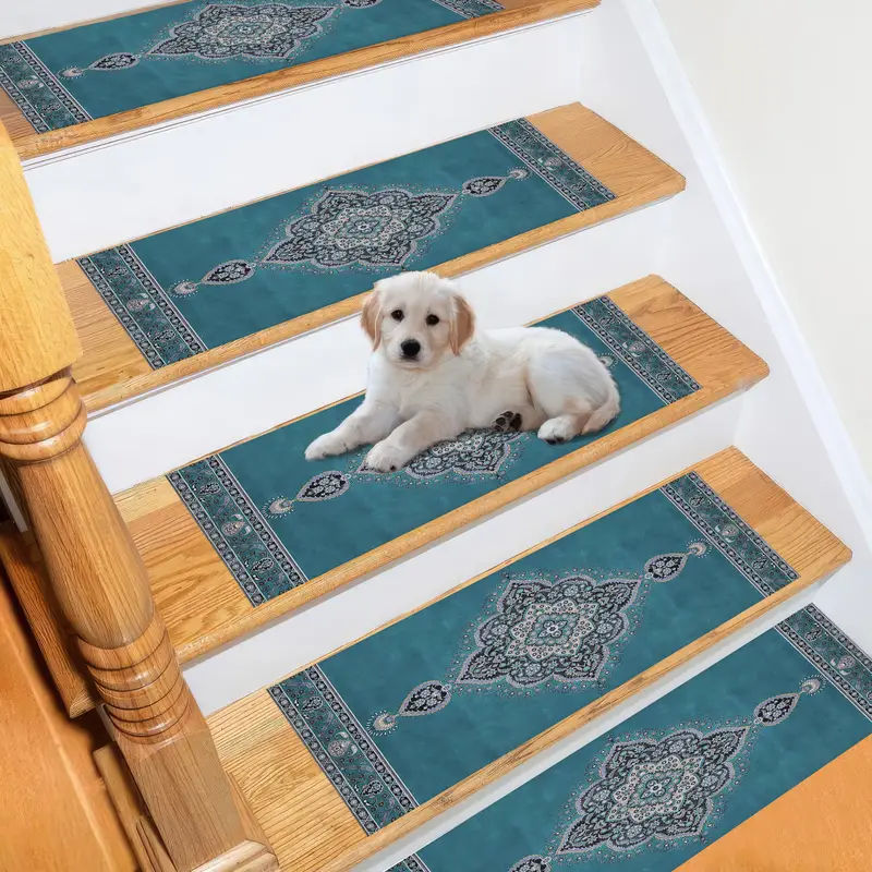 Blue Medallion Step Rug with Floral & Ethnic Patterns