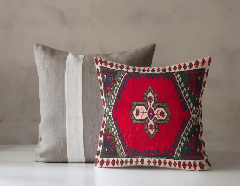 Vintage Turkish Rug Design Printed Pillow - Unique Home Accent