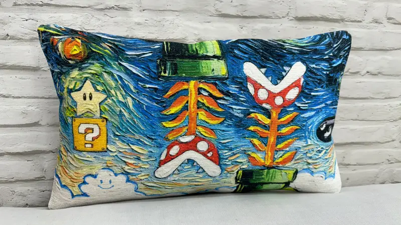 Super Mario World Starry Night Printed Pillow - Van Gogh Gaming