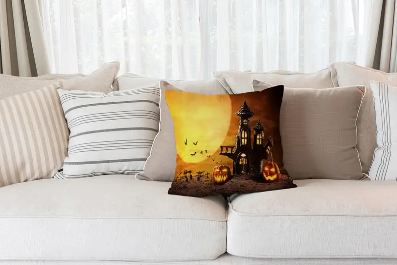 Haunted Castle Print Pillow: Halloween Themed Home Decor
