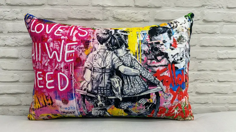 Graffiti-Inspired Banksy Love Printed Pillow - Modern Home Accent