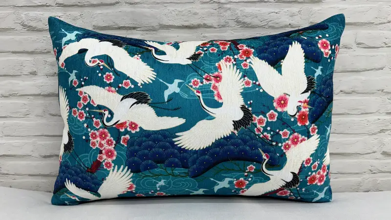 Crane Motif Printed Pillow: Modern Floral Accent for Chic Living