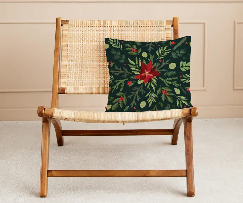 Mistletoe Flower Themed Printed Pillow: Christmas Decor Delight