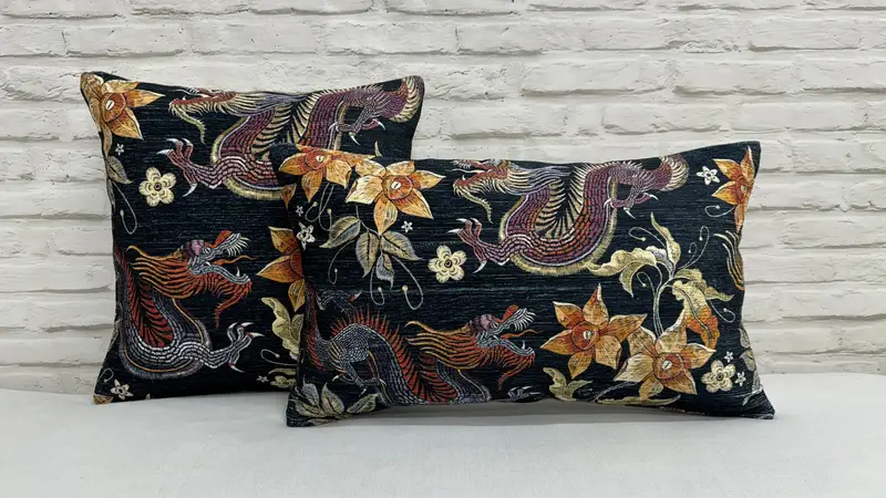 Dragon's Embrace Printed Pillow: Mythical Elegance Unleashed