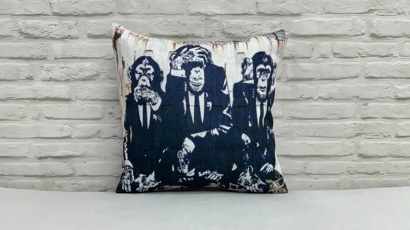 Banksy Monkey Graffiti Printed Pillow - Unique Home Accent