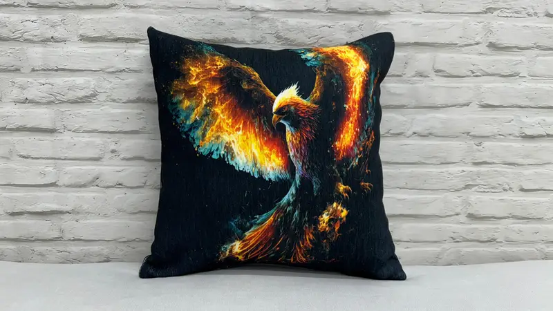 Phoenix Bird Printed Pillow: Trendy Black Office Accent