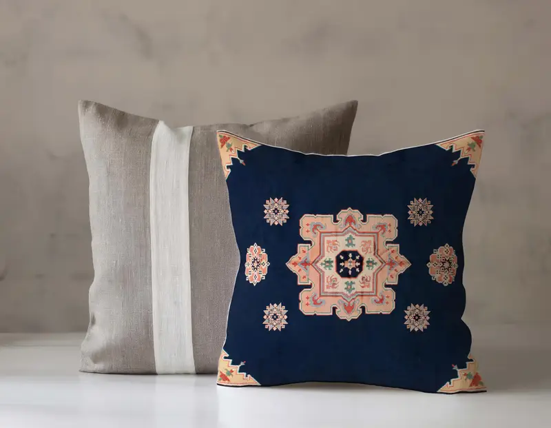 Vintage Turkish Motif Printed Pillow - Bohemian Chic Decor
