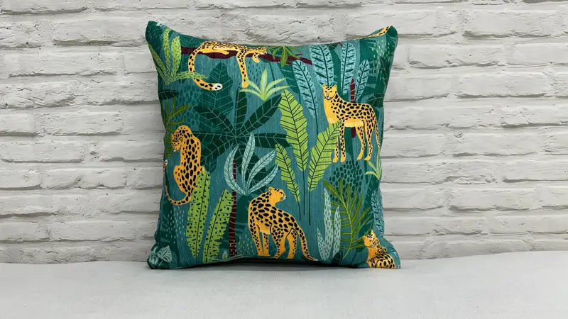 Green Tiger Lover Printed Pillow: Boho Botanical Tropical Decor