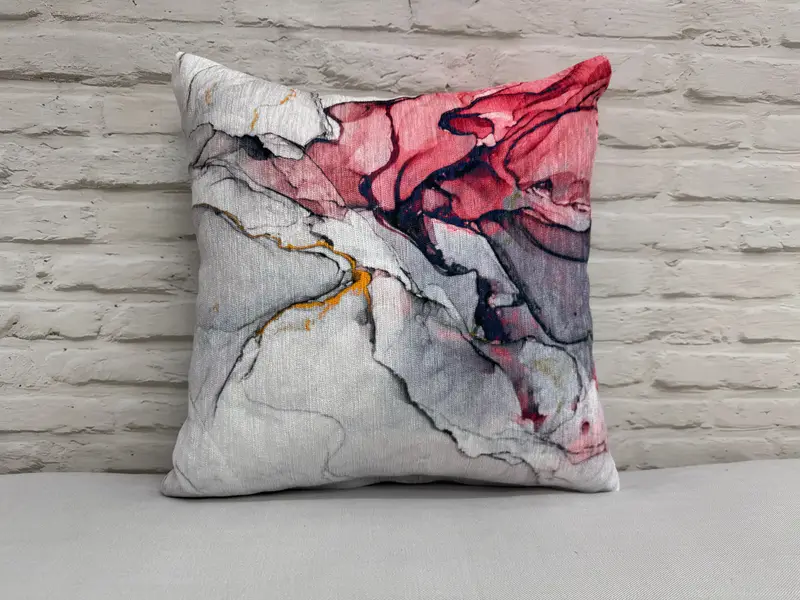Red Marble Printed Pillow - Modern Chic Home Decor Accent