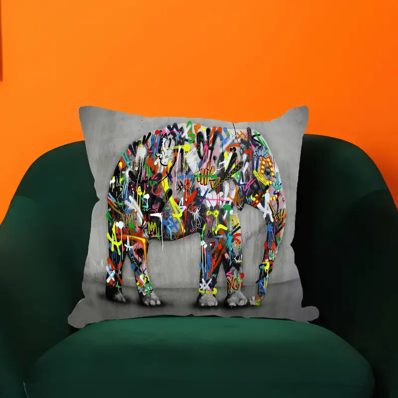 Vibrant Elephant Graffiti Printed Pillow - Modern Home Accent
