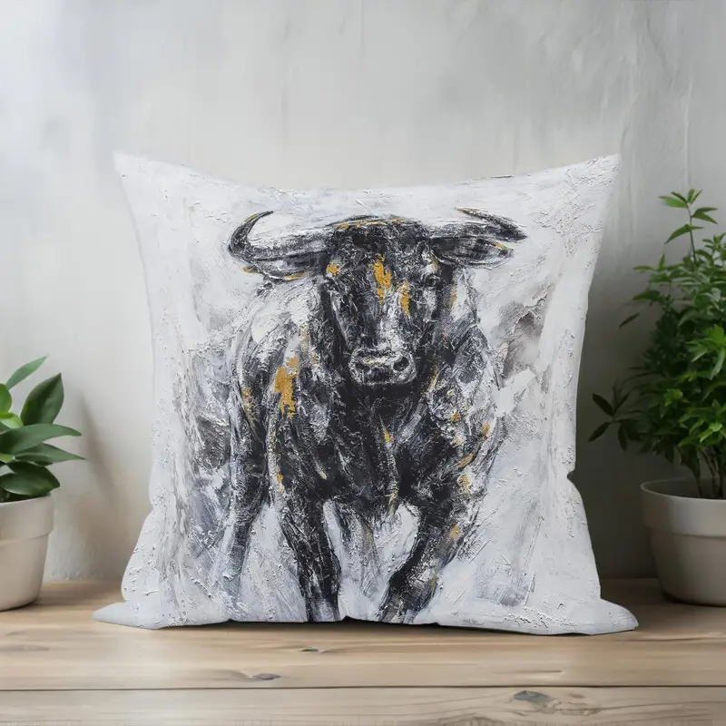Abstract Bull Print Pillow: Modern Black Home Decor Accent