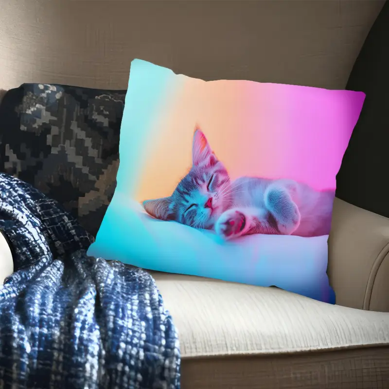 Colorful Dreams Printed Pillow: Cute Cat Sleeping Design