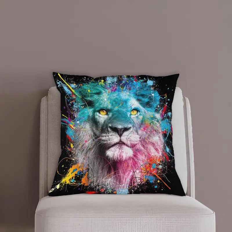 Lion Motif Printed Pillow: Modern, Colorful Home Decor Accent