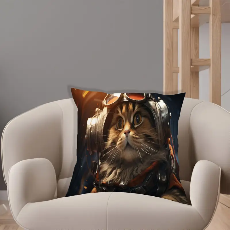 Surrealist Cat Design Printed Pillow with Whimsical Touch
