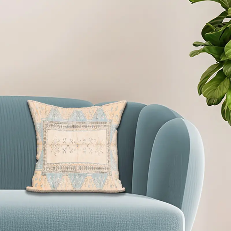 Geometric Turkish Rug-Inspired Printed Pillow - Modern Accent