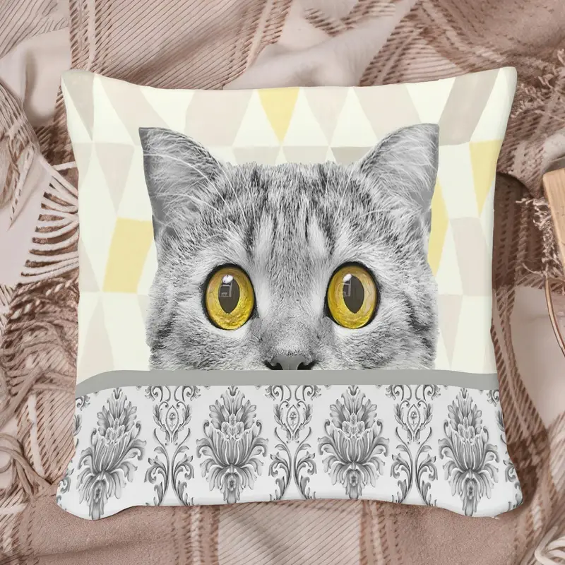 Modern Printed Pillow Featuring Funny Cat Design for Cat Lovers