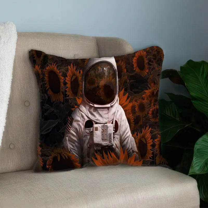 Sunflower Surreal Astronaut Printed Pillow - Abstract Sürrealist Design
