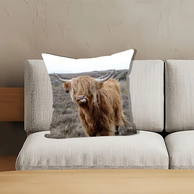 Highland Cow Print Pillow: Scottish Landscape Decor Accent
