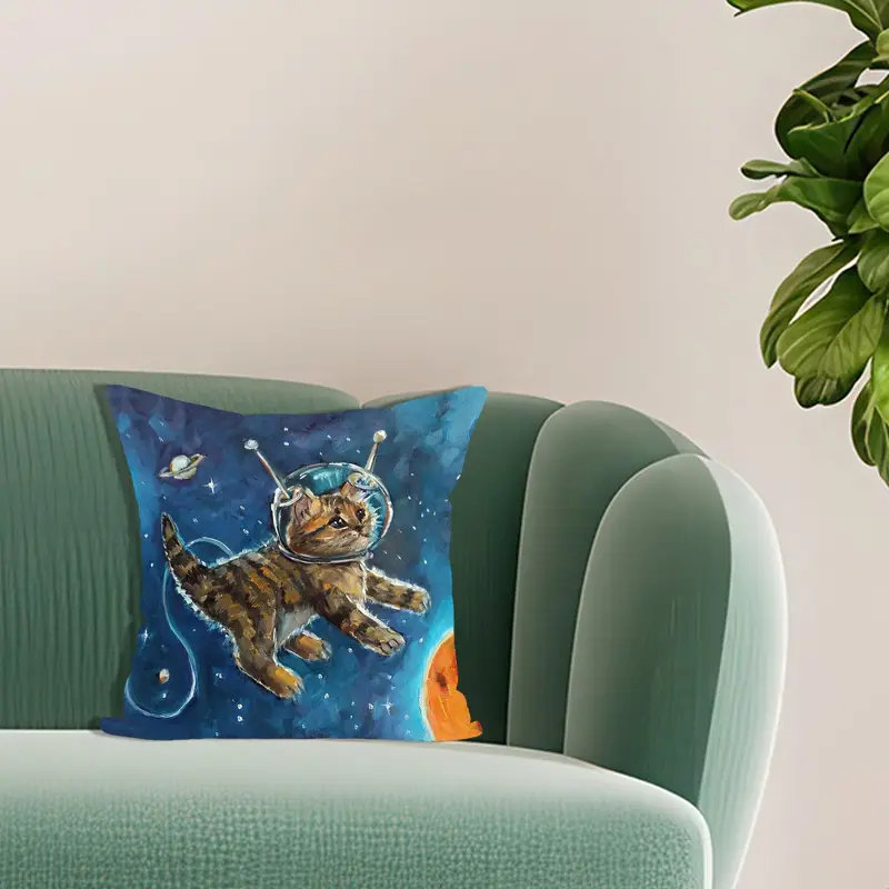 Astronaut Cat Galaxy Printed Pillow: Modern Nursery Decor
