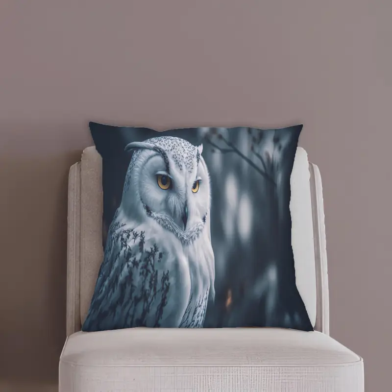 White Winter Owl Pillow, Big Eyed Design, Soft Printed Accent