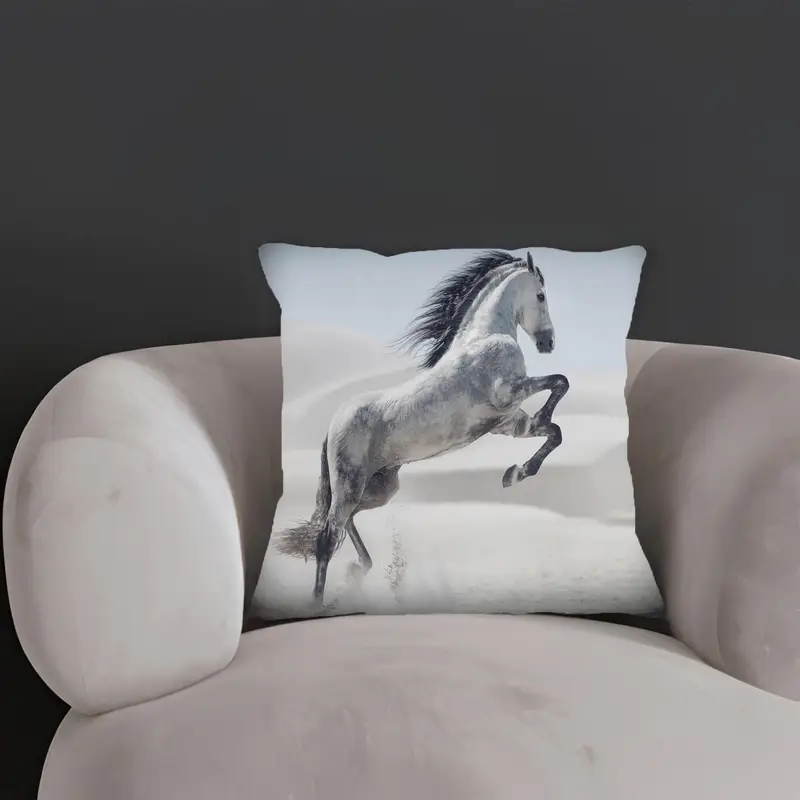 Horse Print Pillow: White Stallion Home Decor Accent