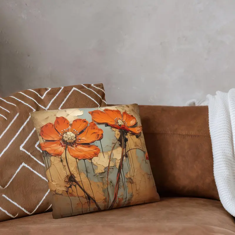 Daisy Flower Print Pillow: Orange & Abstract Floral Comfort