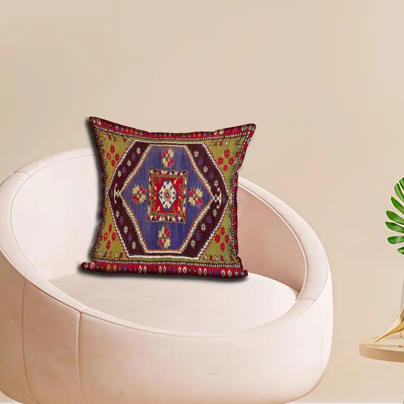 Anatolian Kilim-Inspired Printed Pillow: Geometric Home Accent